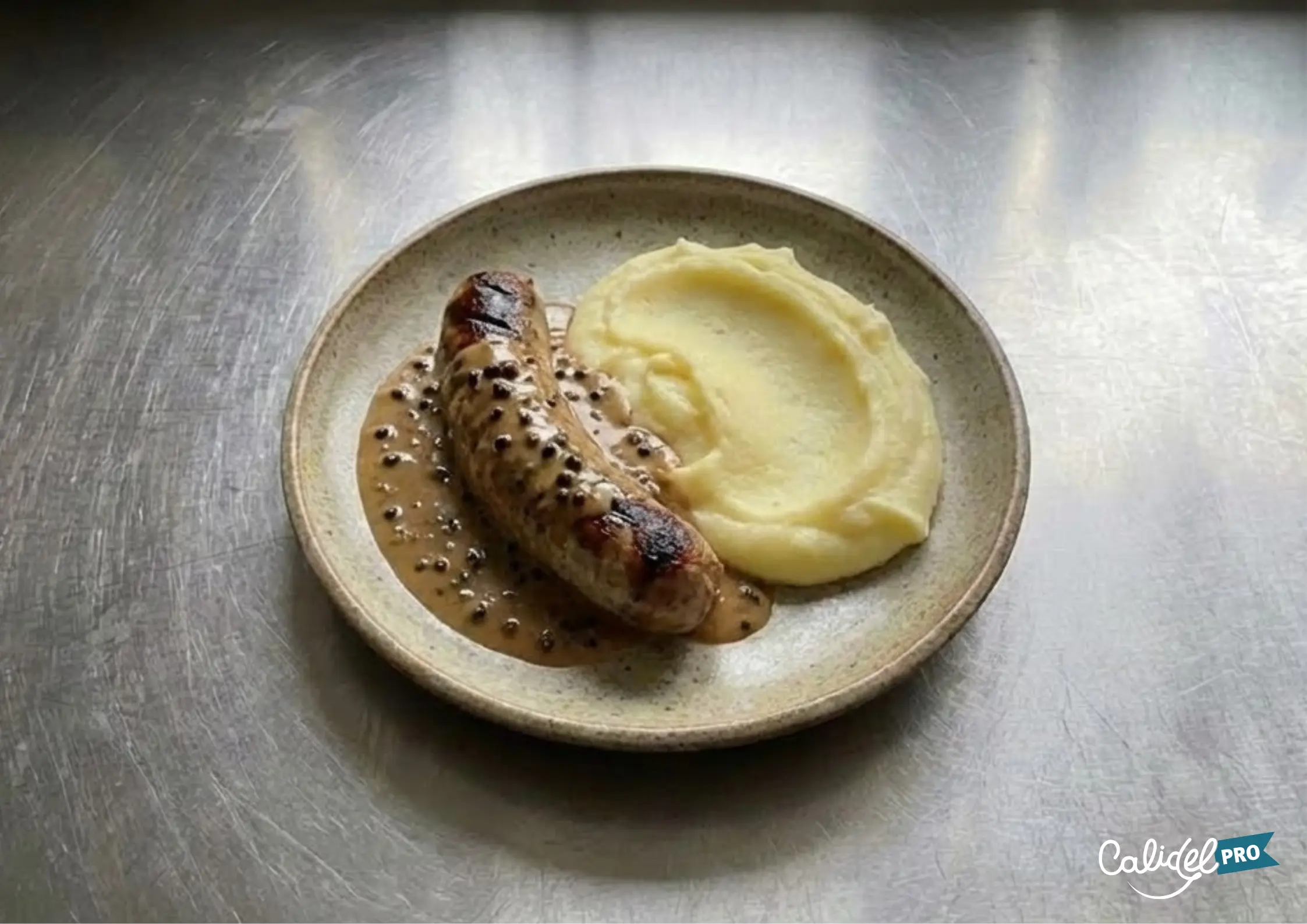 Andouillettes à la moutarde et au vin blanc, purée maison