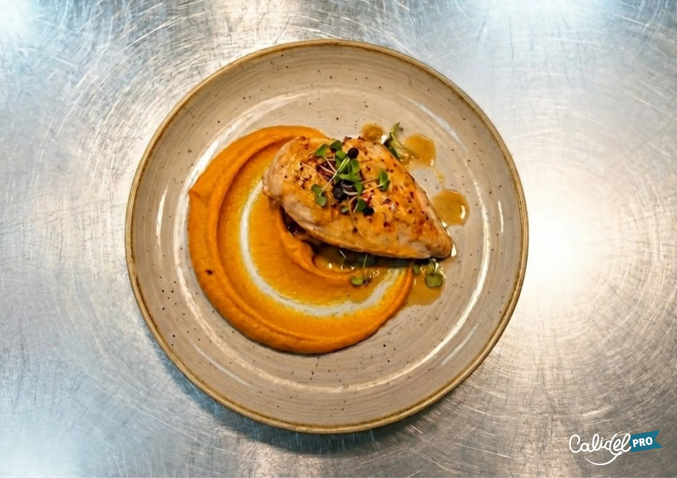 Suprême de poulet basse température, purée de patates douces